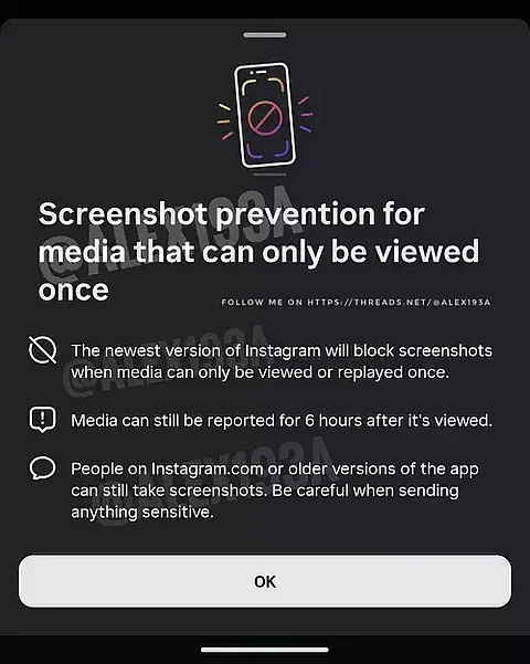 Instagram plant die Blockierung von Screenshots für alle DMs einzuführen, die im "Vanish Mode" ausgetauscht werden, oder wenn die Option "View Once" für Bilder und Videos aktiviert ist.
